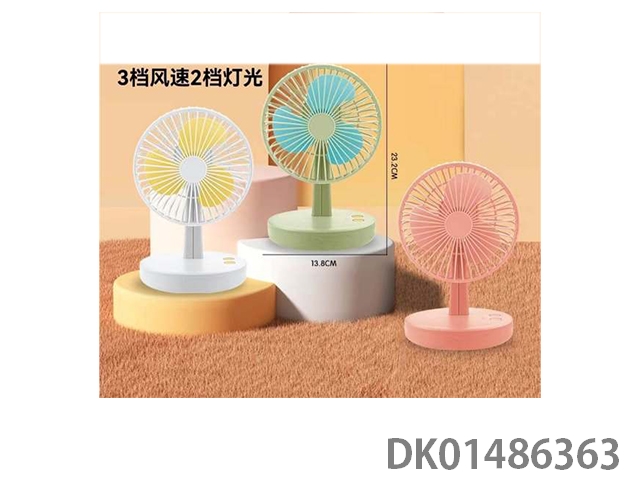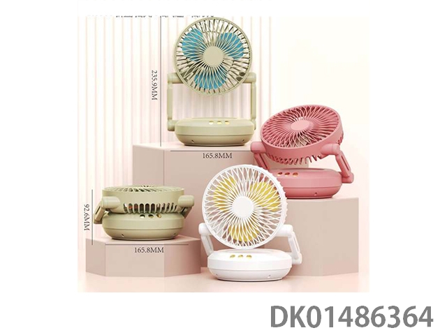 Charging shaking head with light fan, 3-speed wind, 1200mah lithium battery