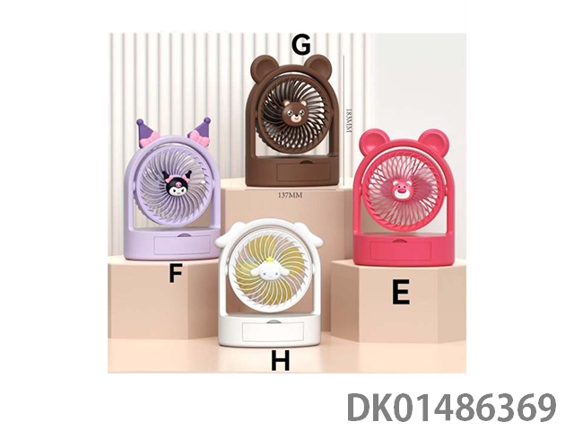 Charging belt storage box diy cartoon small fan with 2 levels of lighting and 2 levels of wind speed, 500ma lithium battery