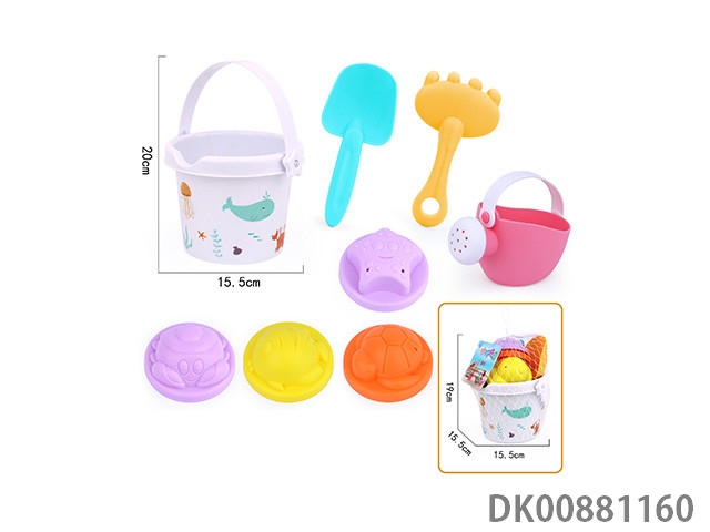6-Piece soft rubber beach bucket