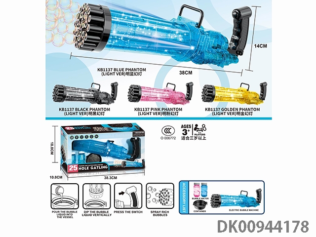 25 Hole transparent phantom light electric gatling bubble machine