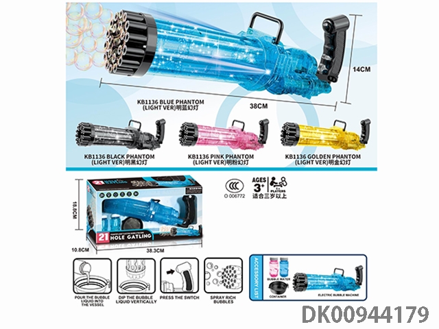 21 Hole transparent phantom light electric gatling bubble machine