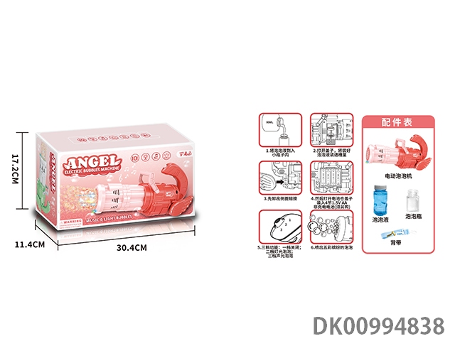 Angel gatling electric 10 hole automatic water absorption light music bubble machine