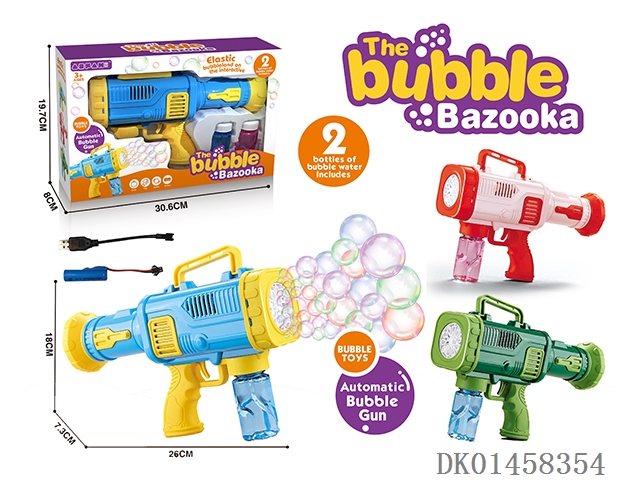 Automatic 10 hole bubble rocket launcher with 3 colors mixed and 2 bottles of 50ml bubble water (rechargeable version)
