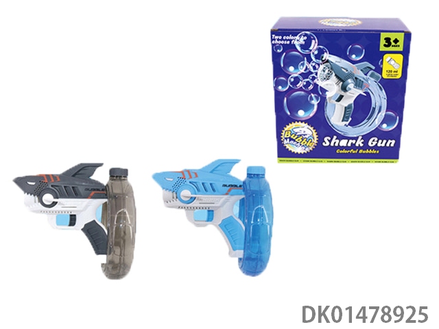 Electric shark bubble gun with light and bubble bottle (not included) (3 aa batteries)