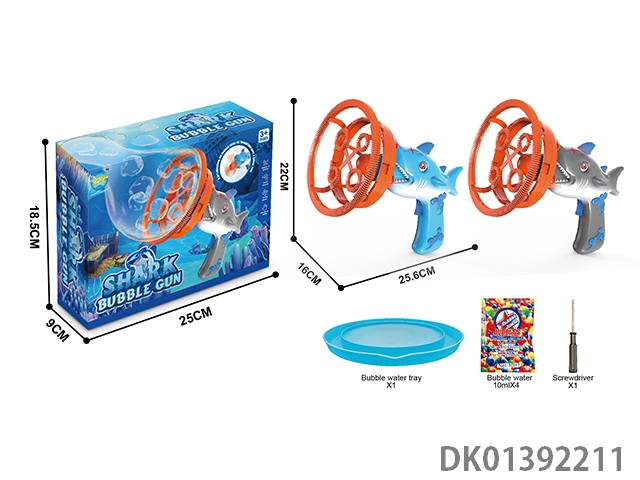 Electric shark bubble gun with (bubble in bubble) gray/blue hybrid