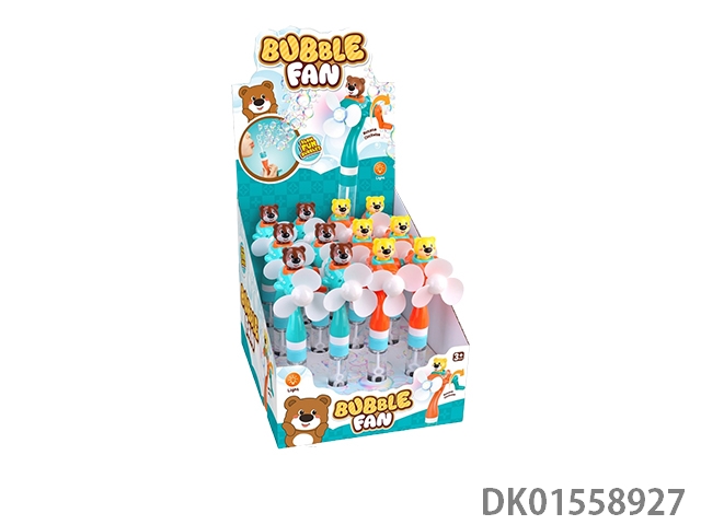Cartoon cute bear light hand cranked fan bubble stick 12pcs/box