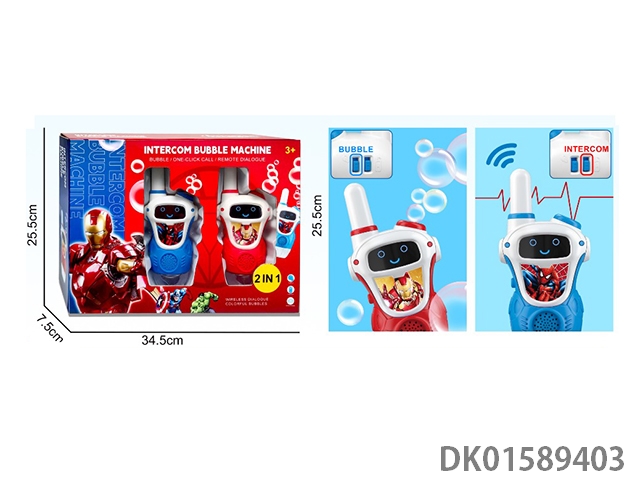 Spider Man, Iron Man Bubble, and walkie talkie 2-in-1