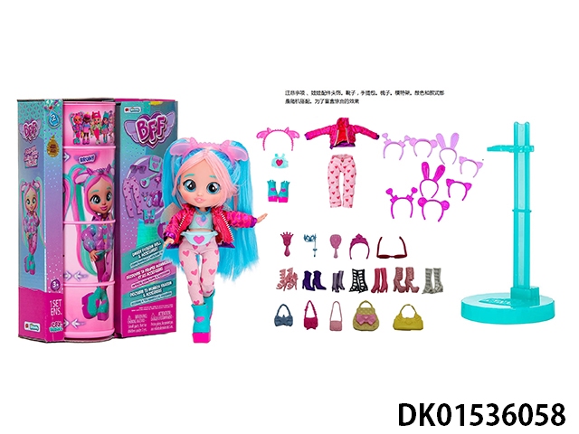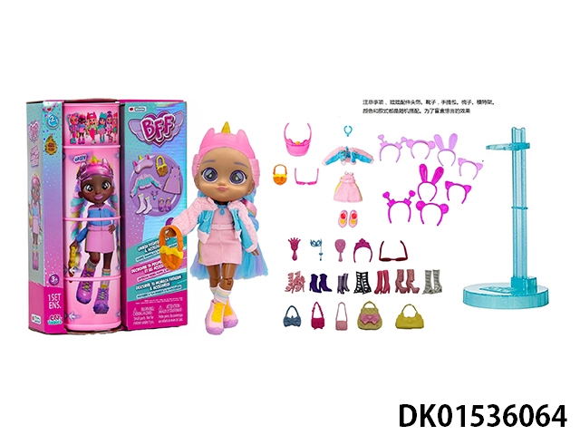 The 2nd generation high-end cry babies bff 1.15-inch 11 joint body cover is more than a rainbow crying barbie doll with 5 surprise accessories hair clips. handbag. shoes. a comb. a model stand
