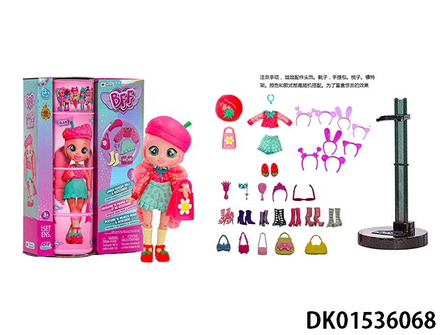 The 2nd generation high-end cry babies bff 1.15-inch 11 joint solid strawberry rainbow crying barbie doll with 5 surprise accessories hair clip. handbag. shoes. a comb. a model stand