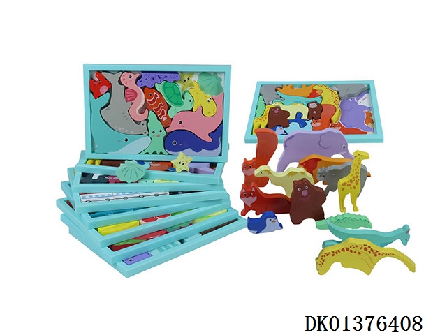 Wooden 3d puzzle stacking music 2-in-1- marine organisms