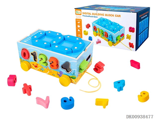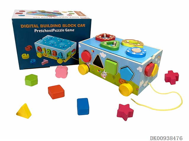 Wooden animal block cart 5 animals