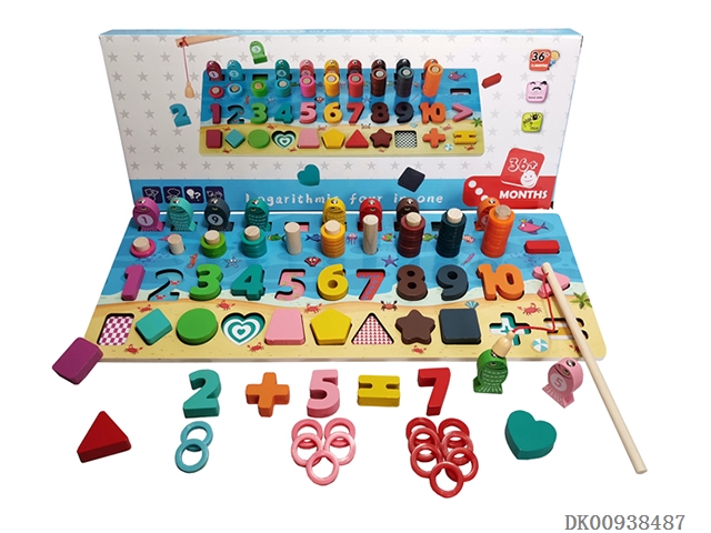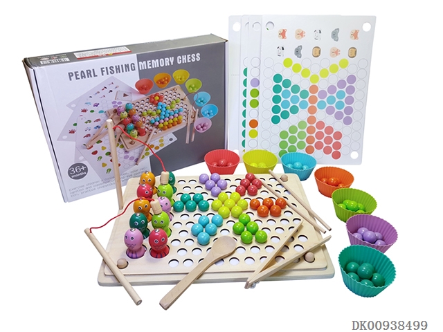 Wooden fishing clip bead puzzle