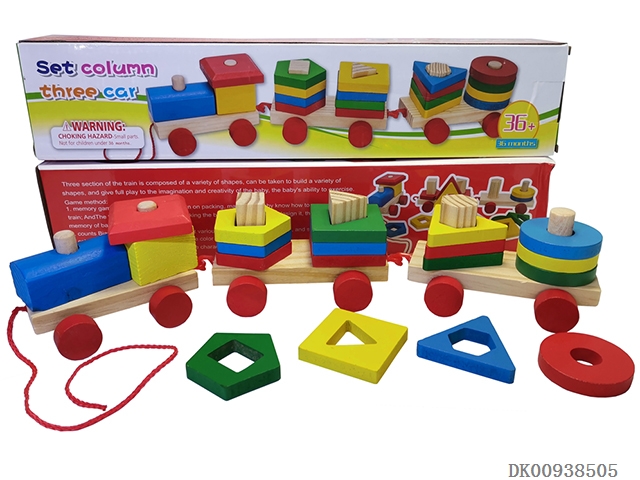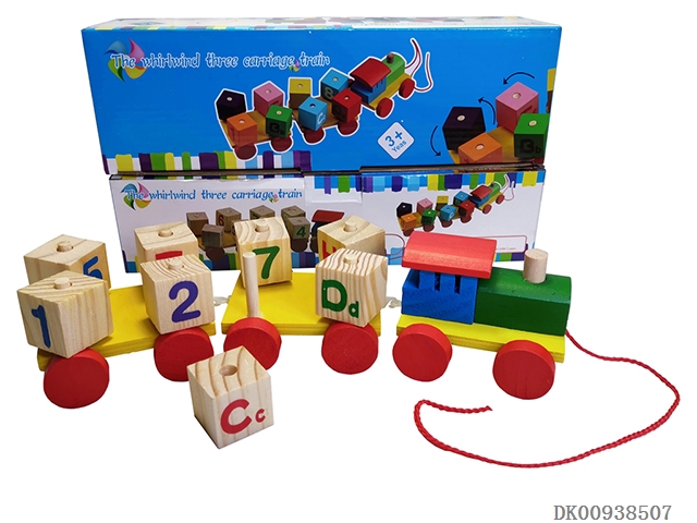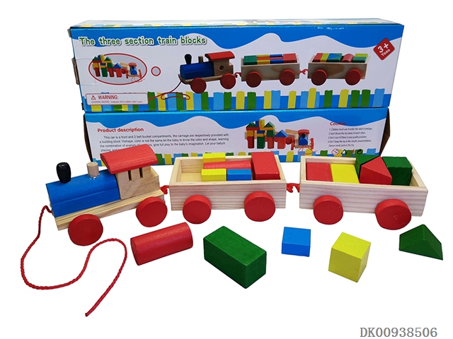 Wooden 3-section building block train