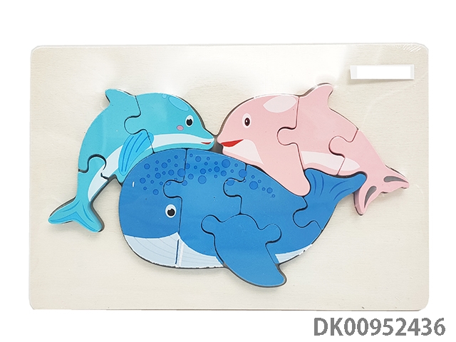 Wooden three-dimensional 4-in-1 marine animal puzzle