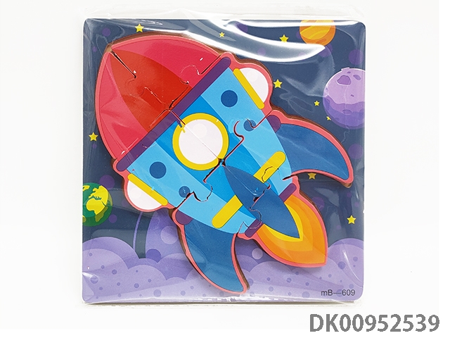 Wooden three-dimensional rocket puzzle