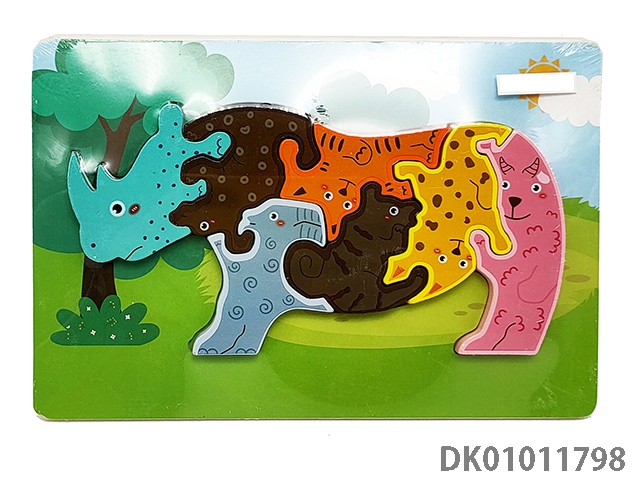 Wooden three-dimensional rhinoceros puzzle