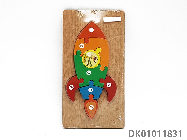 Wooden three-dimensional rocket puzzle