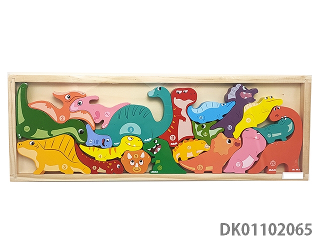Wooden 20-grain dinosaur building block box