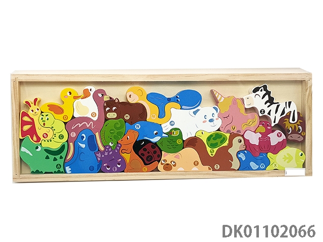 Wooden 26-particle animal building block box