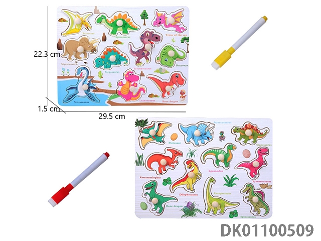 Wooden dinosaur large hand grab board puzzle board 2 in 1