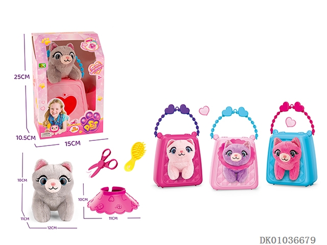 Crystal eyes plush cat portable bag in color box