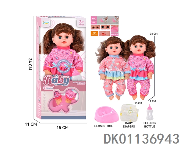 16 Inch iron eye water and urine doll with matching tableware, milk bottle, tissue box, diaper pants, english ic (gcc)