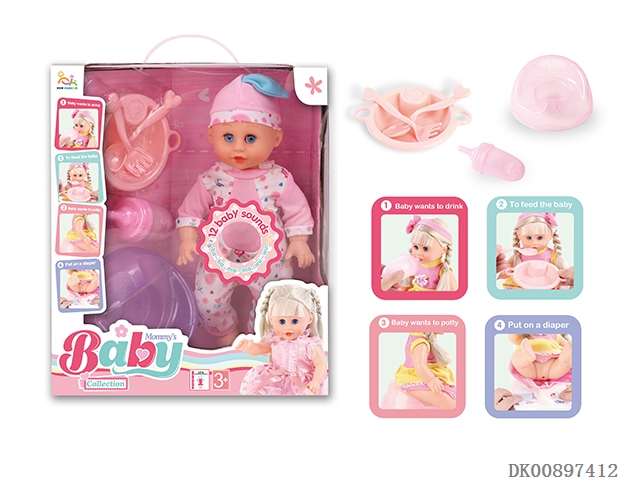 12 Inch english 12 tone ic drinking and urinating boy (with water sucking bottle, urinal and tableware)