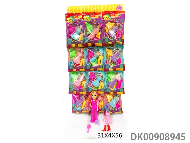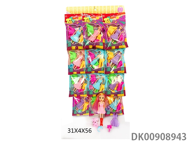 Hanging board 12 bags of 7-inch big eyed girls with skirts. comb, bag