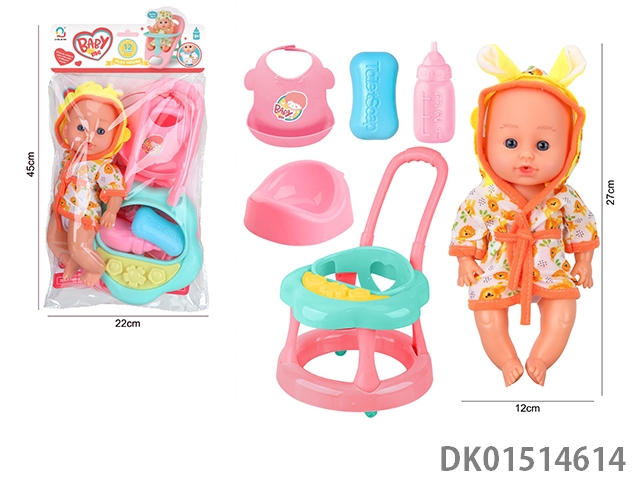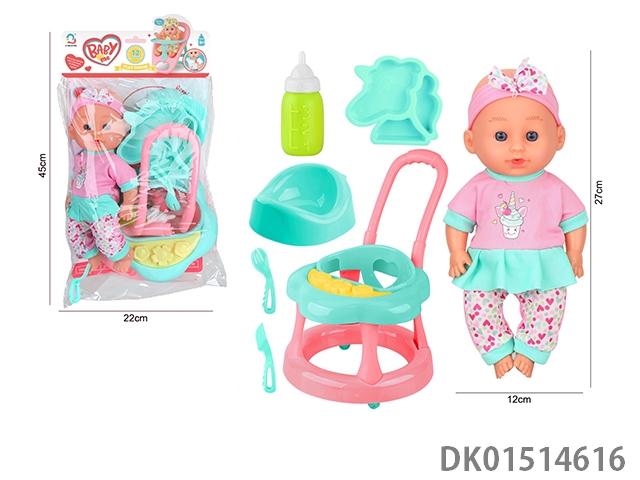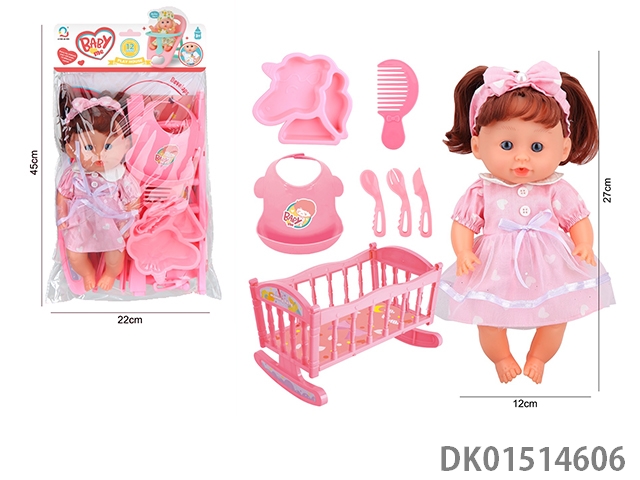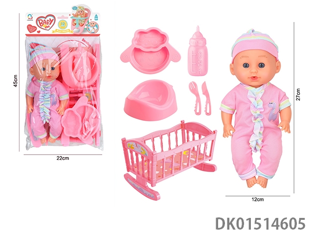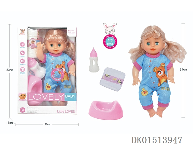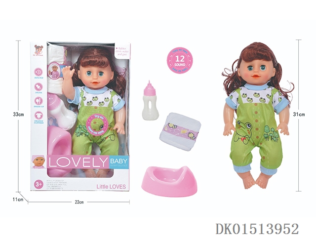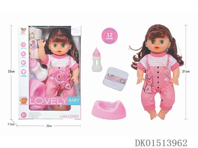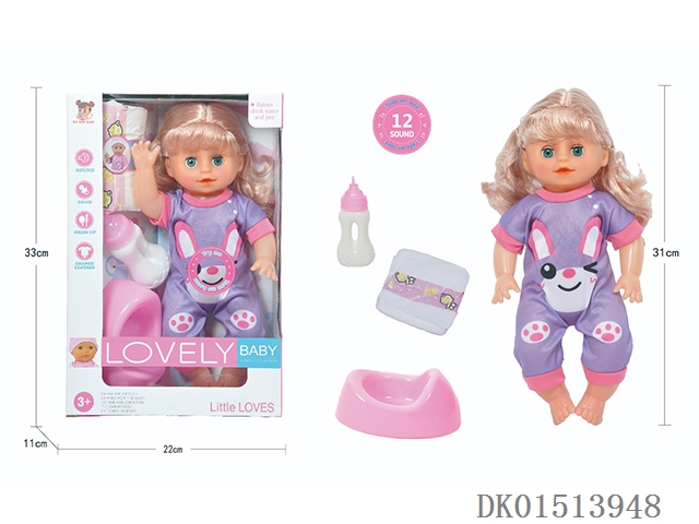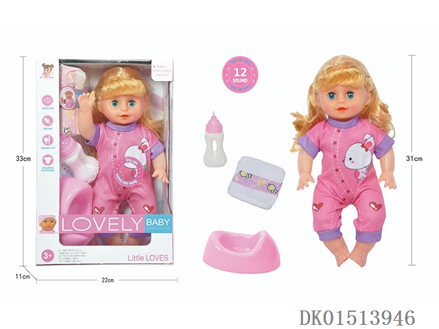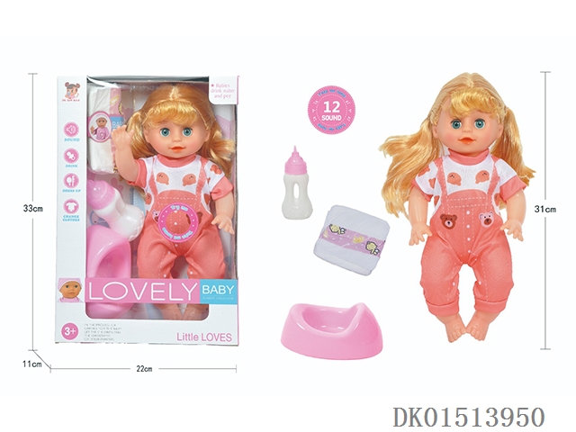 14 Inch female doll with 12 sound ic (accessories: diapers, milk bottle, floor basin)