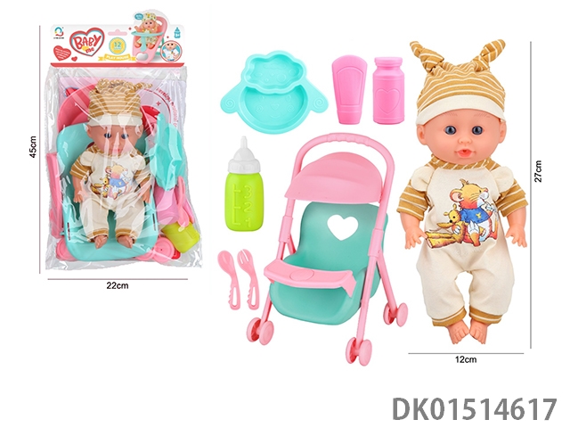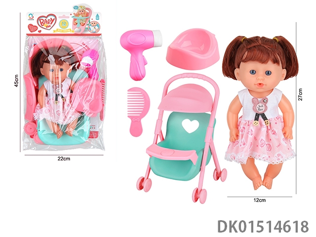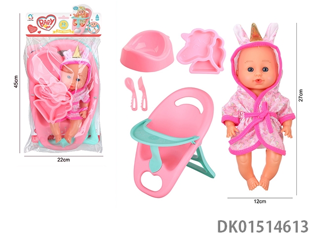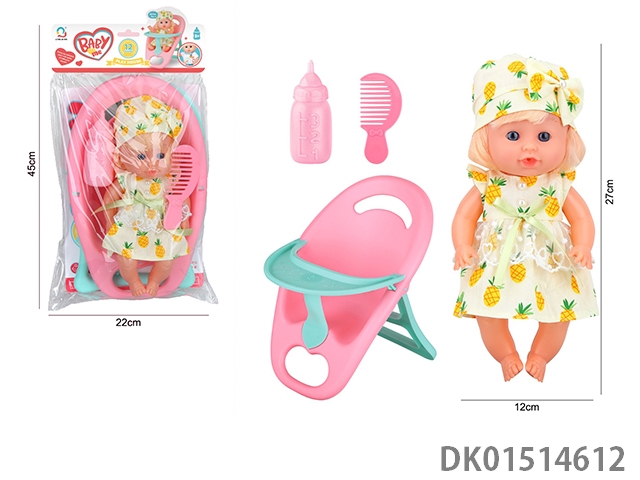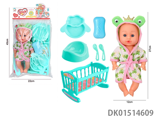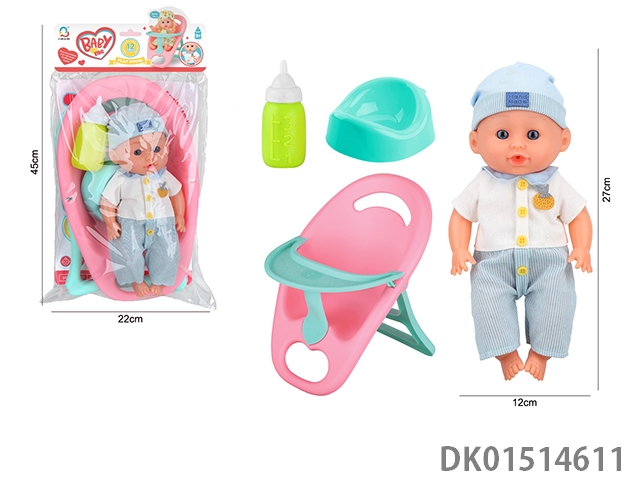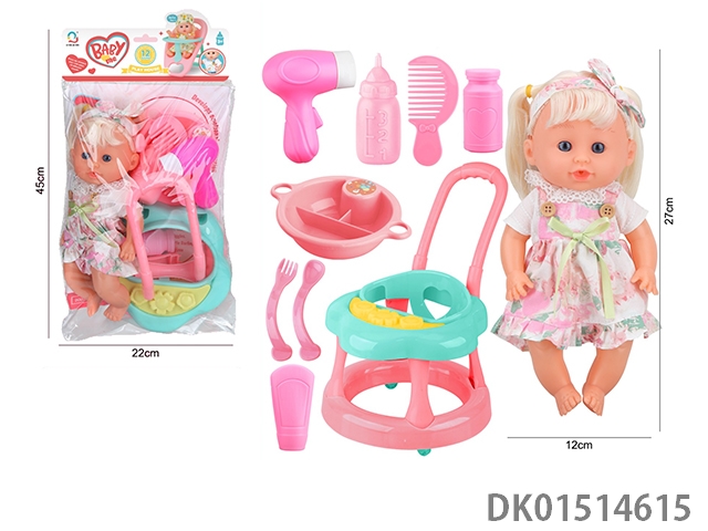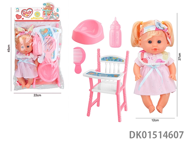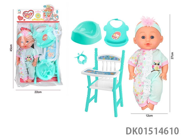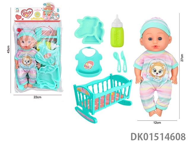 14 Inch female doll with 12 sound ic (accessories: diapers, milk bottle, floor basin)