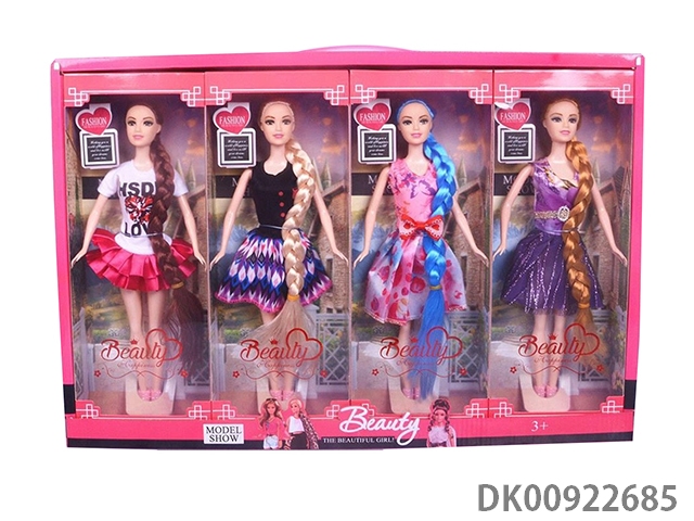 11.5-Inch long hair princess with handbag 4 mixed 4pcs/box