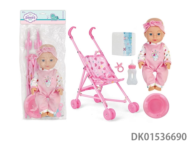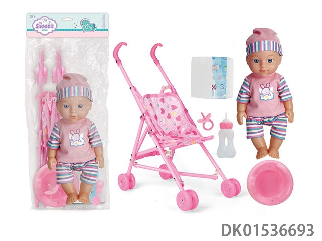10 Inch doll with accessories blowing bottle body with four tone ic and cart (dad/mom/cry/laugh)