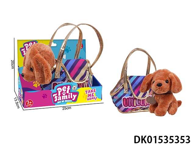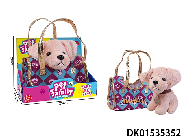 Girl playing house fashion toy 20cm golden fur dog plush toy and handbag