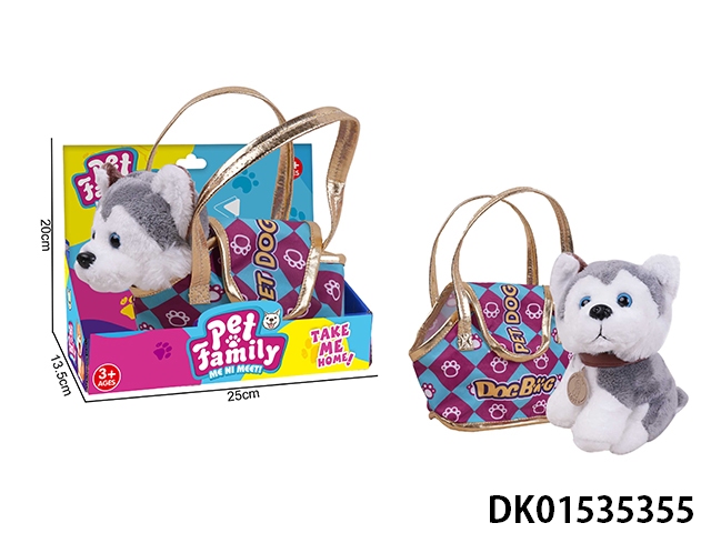 Girl playing house fashion toy 20cm husky puppy plush toy and handbag