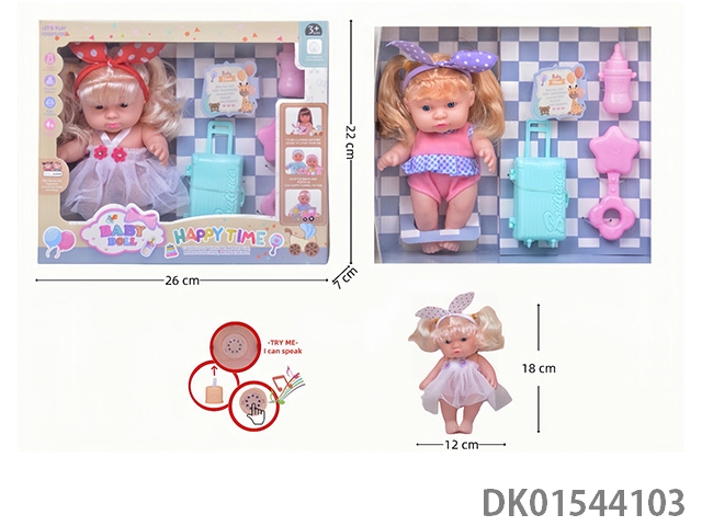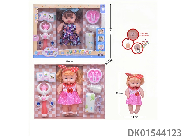 8-Inch full vinyl expression doll with headwear, travel case, bottle, hand cranked bell, two mixed versions (with 4-speaker ic)