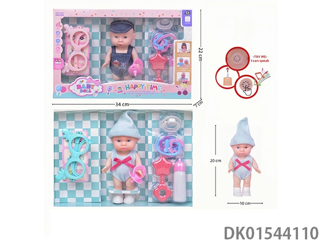 8-Inch full vinyl straight leg expression doll with glasses, bottle, and vacuum formed packaging (with 4-speaker ic)