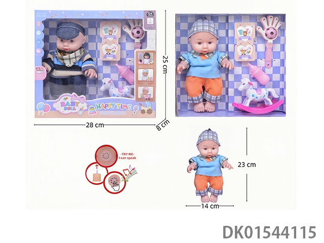 10 Inch full vinyl expression doll with bottle, rocking horse, hand clapping bell, mixed design (with 4 sound ic)