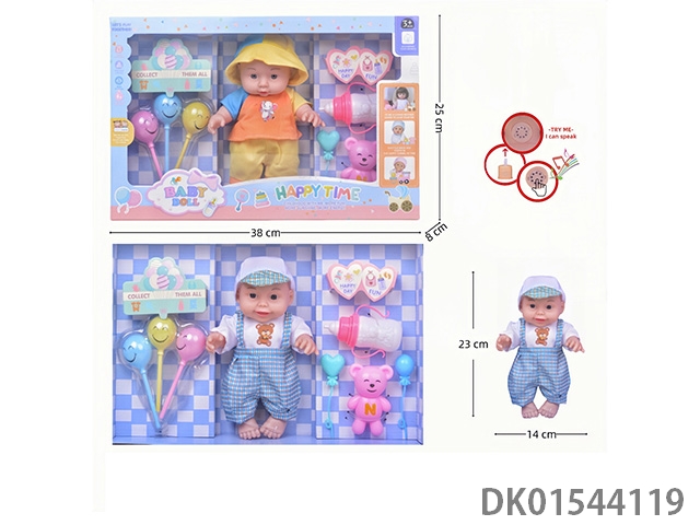 10 Inch full vinyl expression doll with bottle, teddy bear, and balloon mixed design (with 4-speaker ic)
