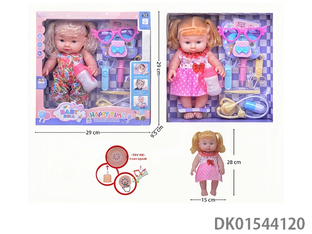 12 Inch full vinyl expression doll with bottle and medical equipment set, two mixed versions (with 4-speaker ic)