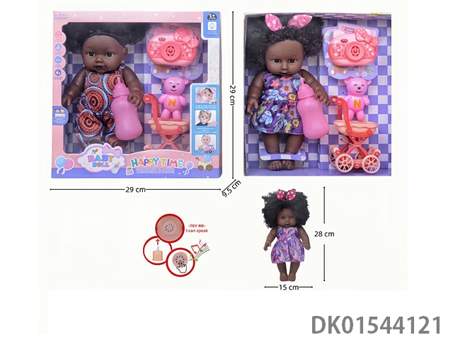 12 Inch full vinyl black expression doll with bottle, camera, and cart doll mixed (with 4-speaker ic)