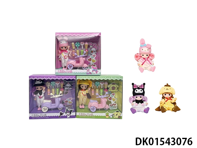 1:1 Set series plush 6.5-inch real body cool lomi doll with cartoon motorcycle and 8 candy sets and cards