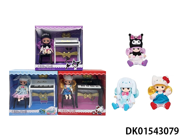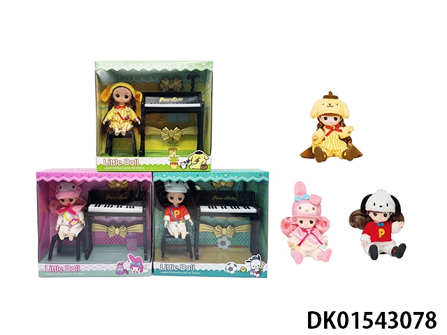 1:1 Set series plush 6.5-inch solid body cool lomi doll with jazz piano set, 3 mixed styles