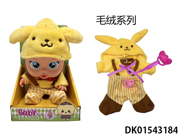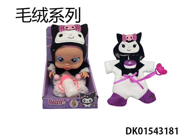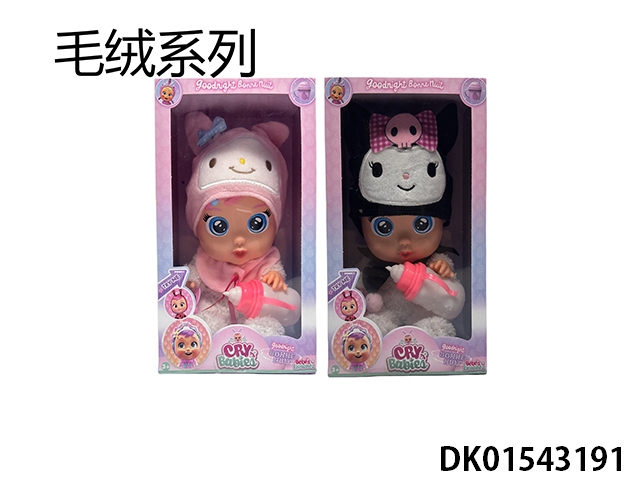 High end plush 14 inch blown bottle cool lomi series with four tone music cry babies tutti fritti tear function with water absorbing bottle and nipple. 2-piece clothing set