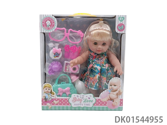 14 Inch blinked double ponytail girl doll (with 12 sound ic and water, urine, bottle, dish, urinal, diaper, and pacifier)