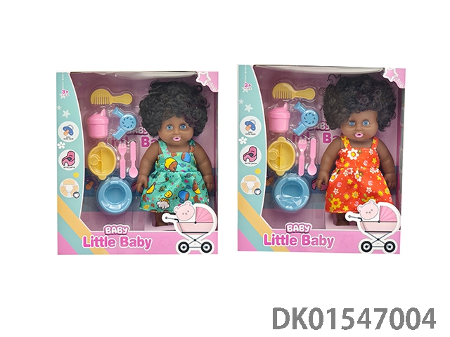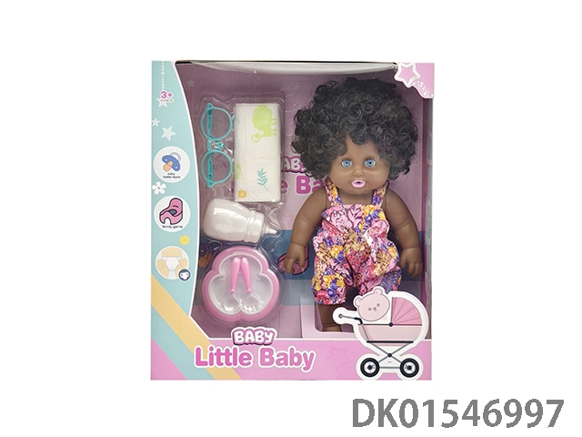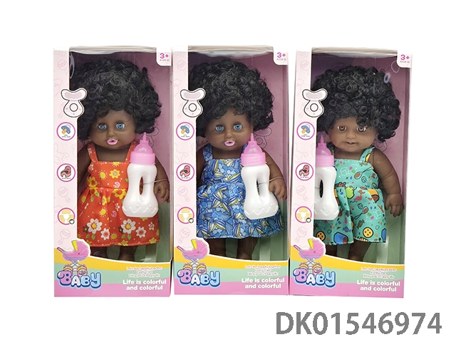 12 Inch vinyl body black fat baby doll and bottle, 4 sound english ic, 3 mixed designs
