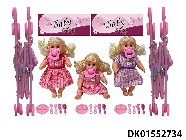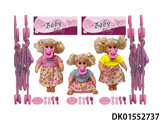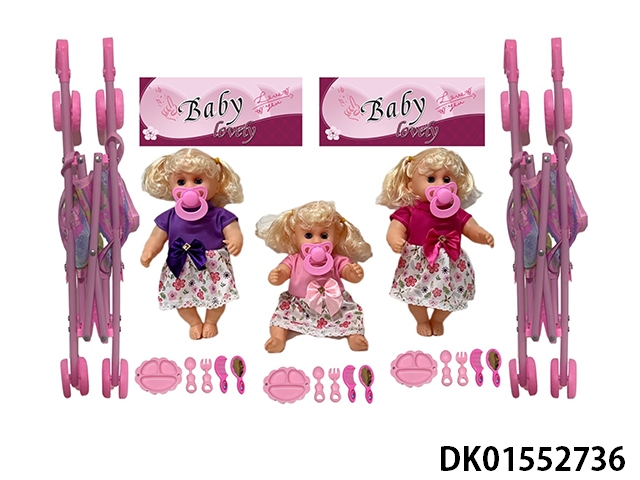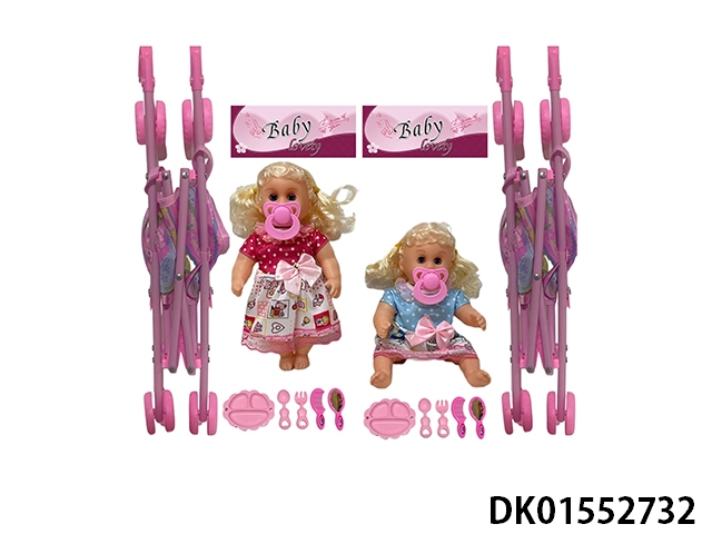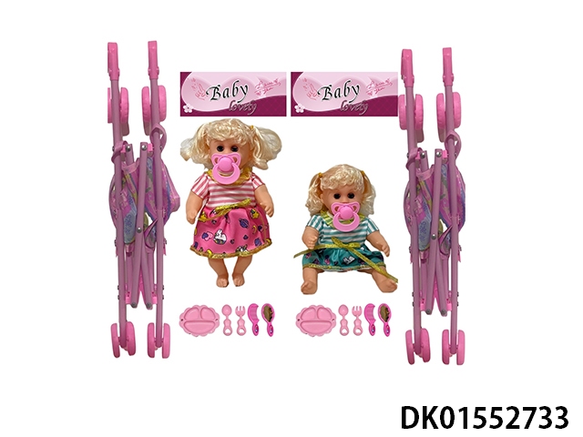 12 Inch high-quality empty bent leg pacifier doll and 45cm stroller with various accessories