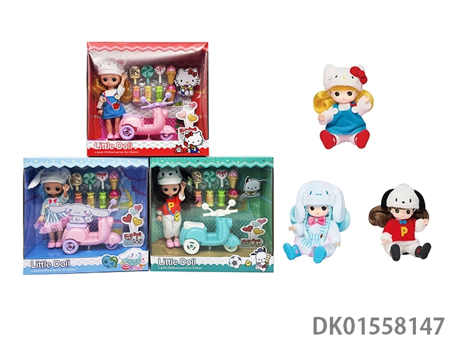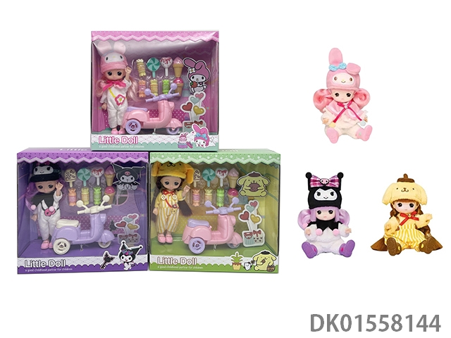 1:1 Set series plush 6.5-inch real body cool lomi doll with cartoon motorcycle and 8 candy sets and cards
