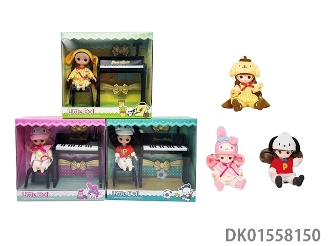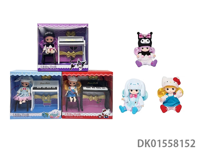 1:1 Set series plush 6.5-inch solid body cool lomi doll with jazz piano set, 3 mixed styles