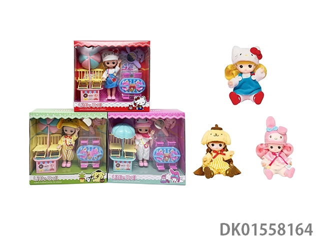 1:1 Set series plush 6.5-inch solid body cool lomi doll with cake set, comb, mirror 3 mixed styles