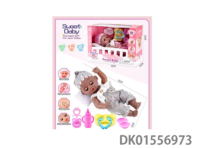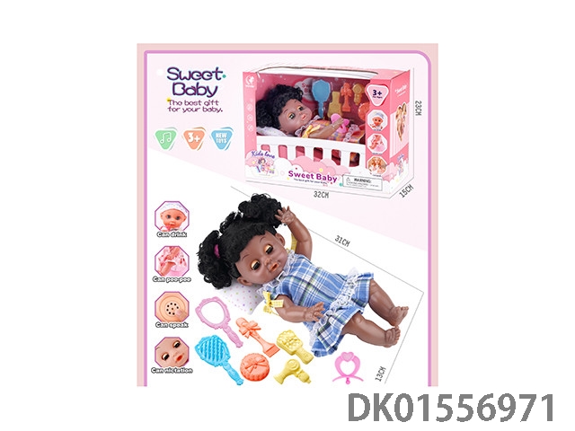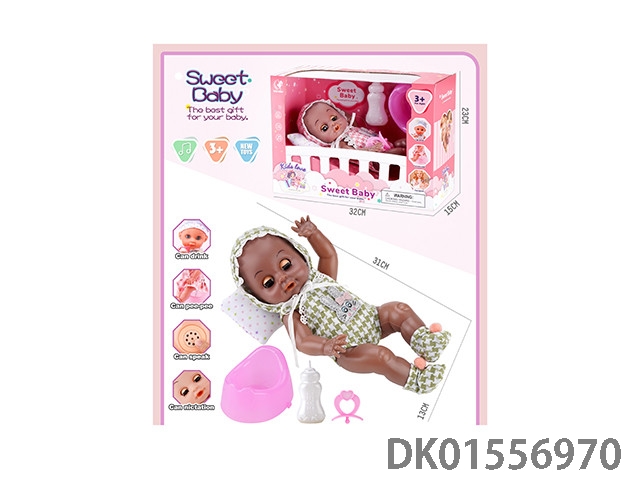 31Cm (blowing air, drinking water, urinating) baby pajamas, black doll